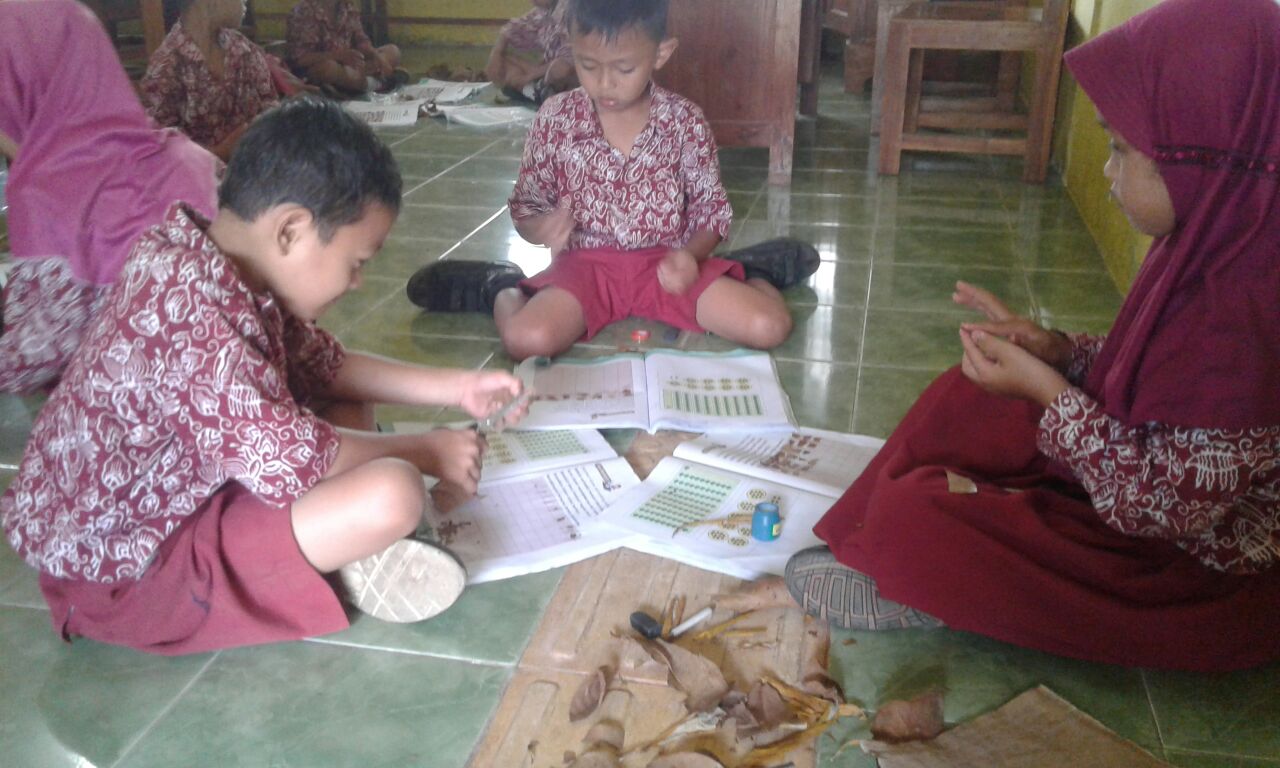 Deskripsi : Membilang banyak benda dengan menempel daun
